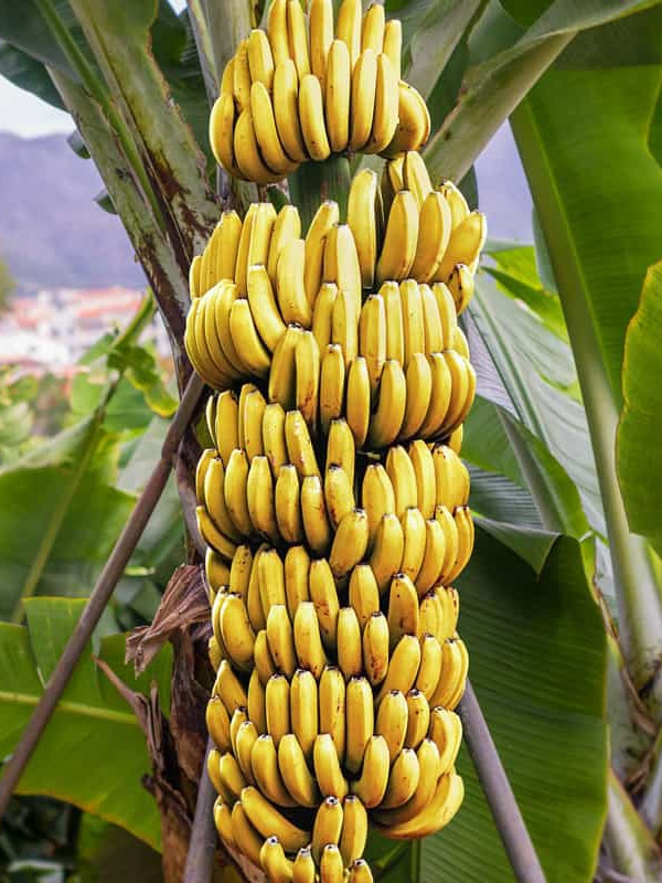 Después de nueve meses, se cosechan los plátanos cuando aún están verdes. En la bodega de empaque se inspeccionan y se clasifican los plátanos para la exportación. Los plátanos para la exportación tienen que cumplir estándares muy altos; por lo general, los plátanos que no cumplen se venden localmente a un precio mucho más bajo.